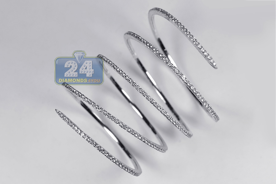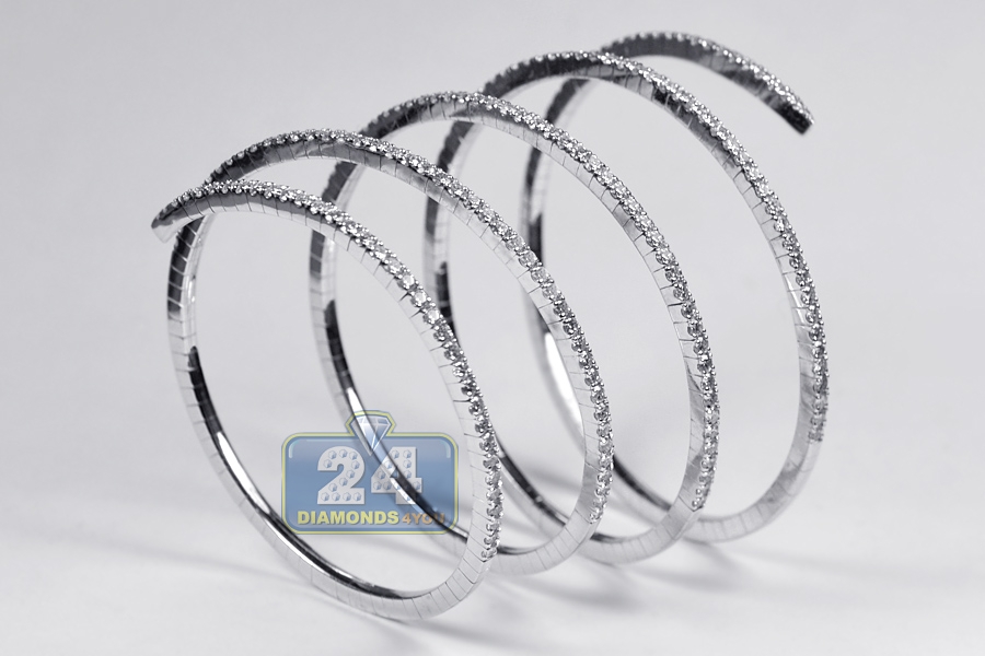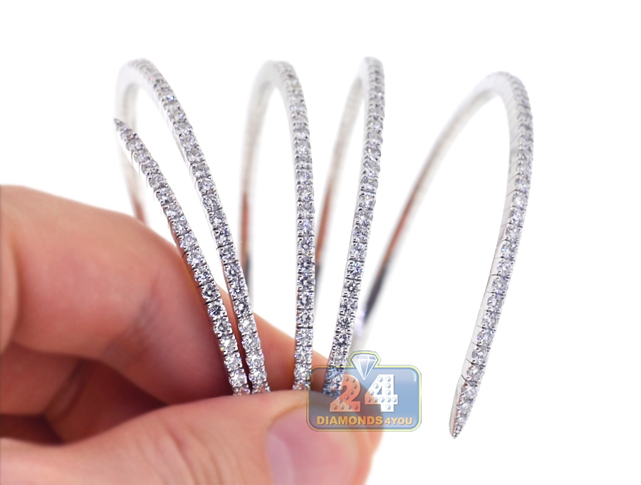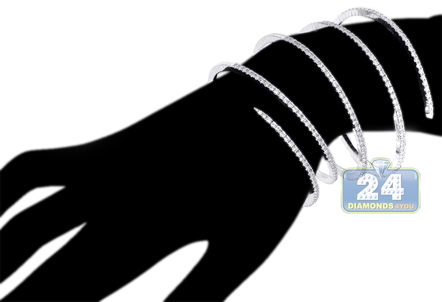 14K White Gold 11.42 ct Diamond Spring Womens Bangle Bracelet