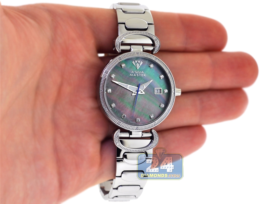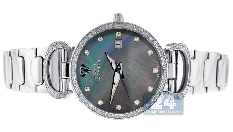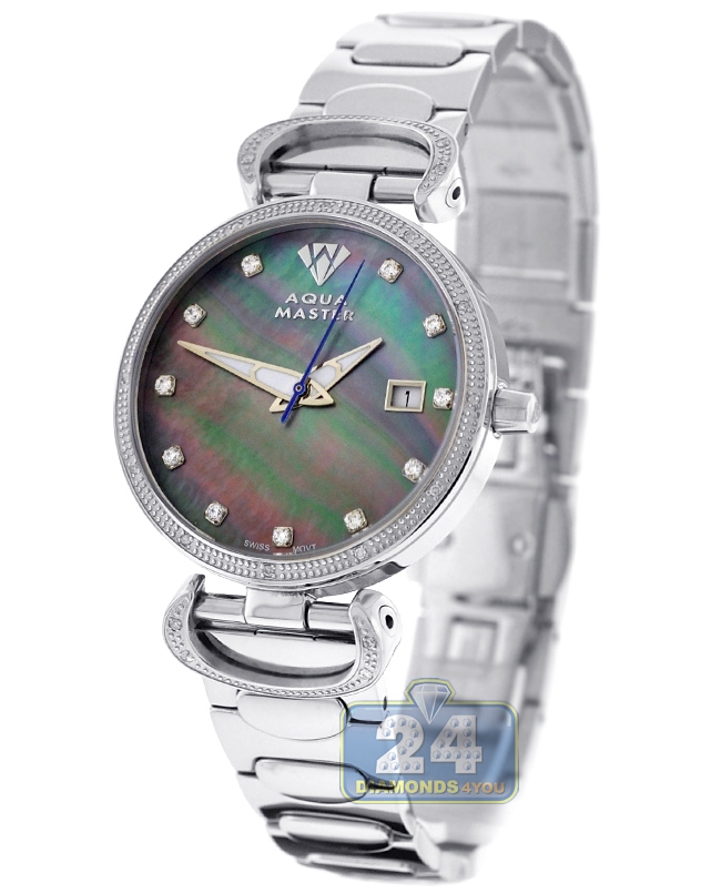 Womens Diamond Watch Aqua Master 0.3 ct Steel Black Dial