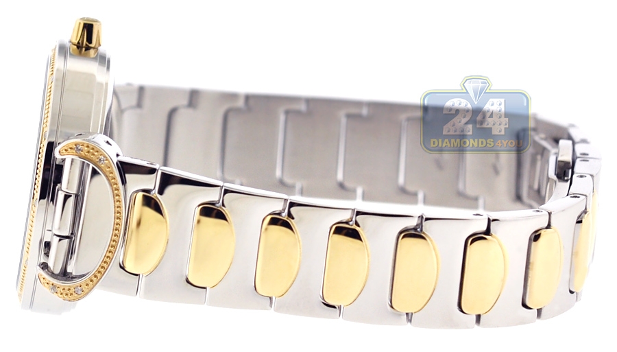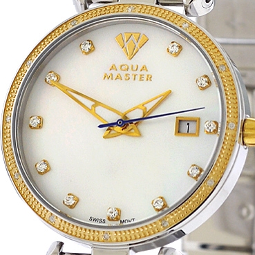 Stand out of the crowd wearing this lovely women's diamond watch from new classic collection designed by Aqua Master. It features round-shaped case created from stainless steel that has high-polished smooth finish. It also comes on stainless steel (with yellow gold plated inserts) band secured with deployment closure. White mother-of-pearl dial has 11 sparkling white stones, and protected by scratch resistant mineral crystal. This timepiece is accented with 20 pieces of genuine diamonds. It's equipped with Swiss movement that has date function. Fashionable diamond watch to wear!