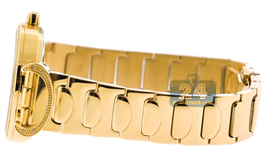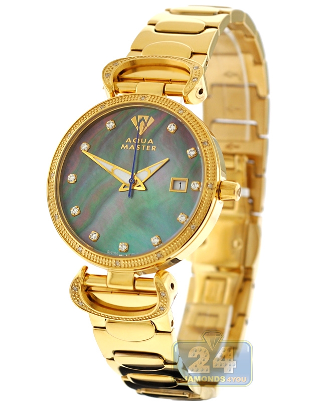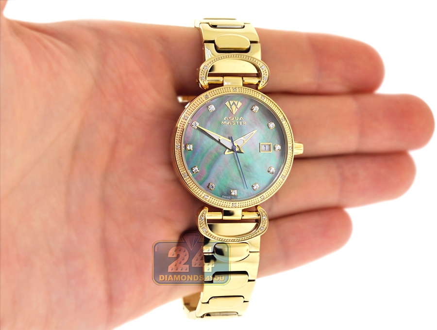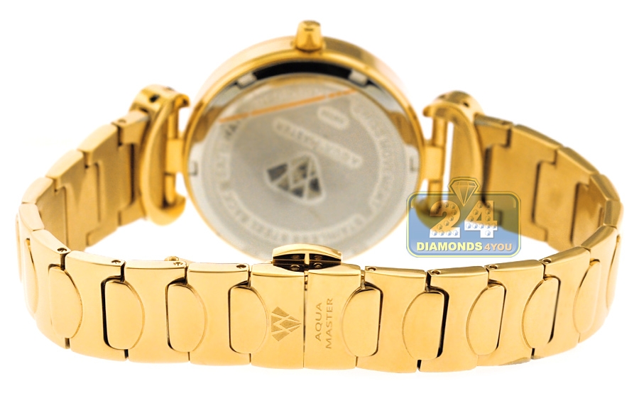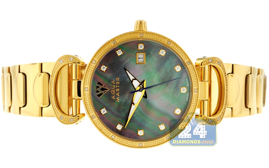 Womens Diamond Watch Aqua Master 0.3 ct Yellow Gold Black Dial
