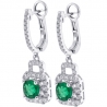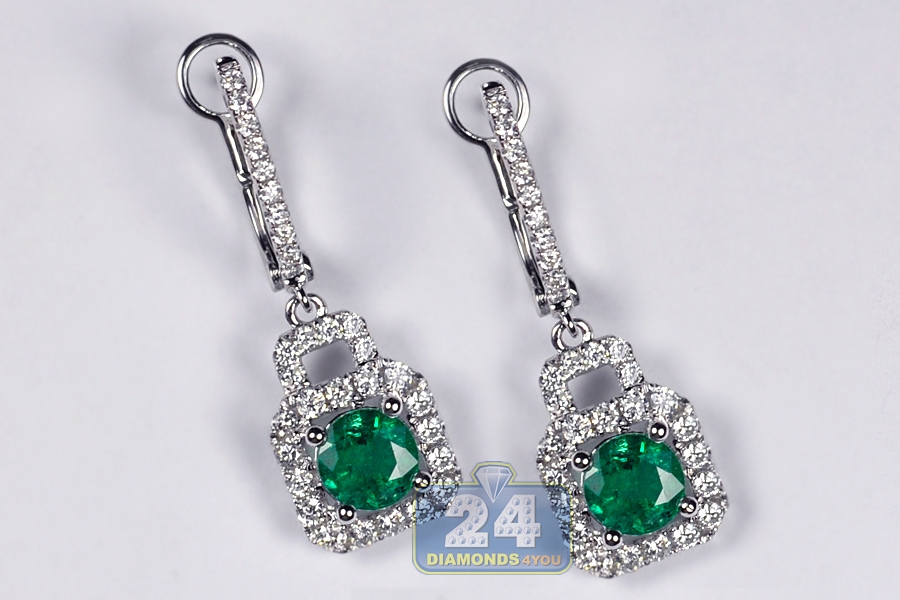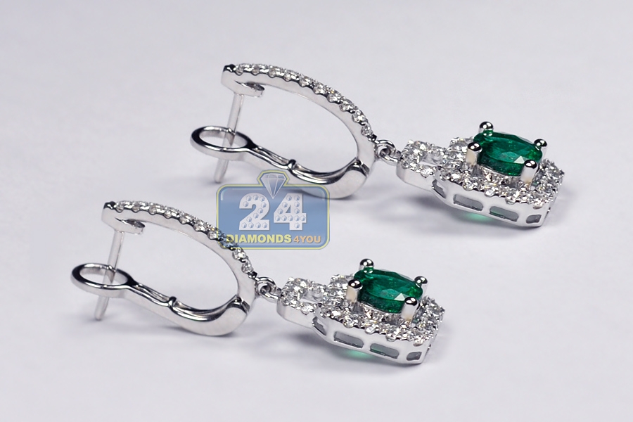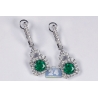 18K White Gold 2.66 ct Emerald Diamond Womens Drop Earrings