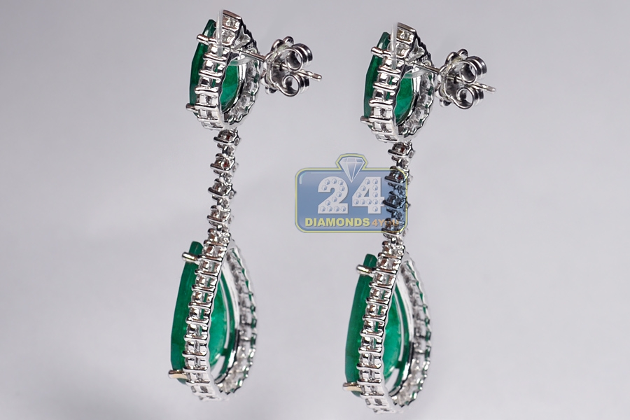 18K White Gold 7.61 ct Emerald Diamond Womens Drop Earrings