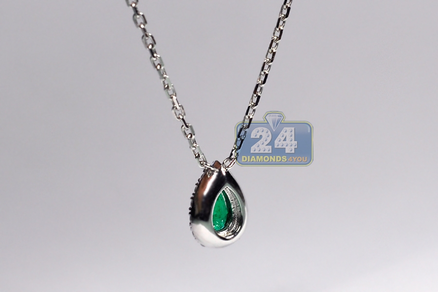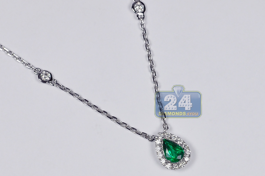 14K White Gold 0.68 ct Emerald Diamond Womens Drop Necklace