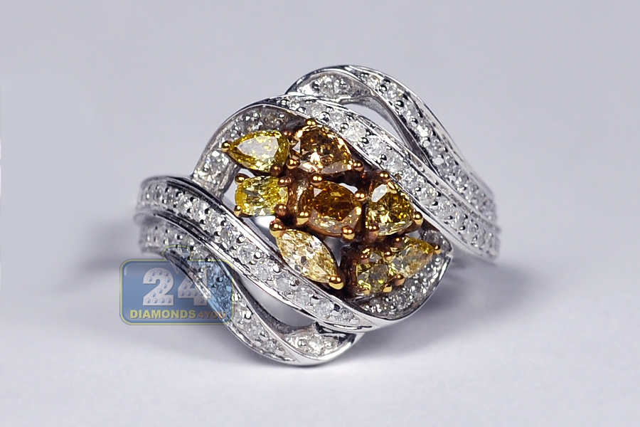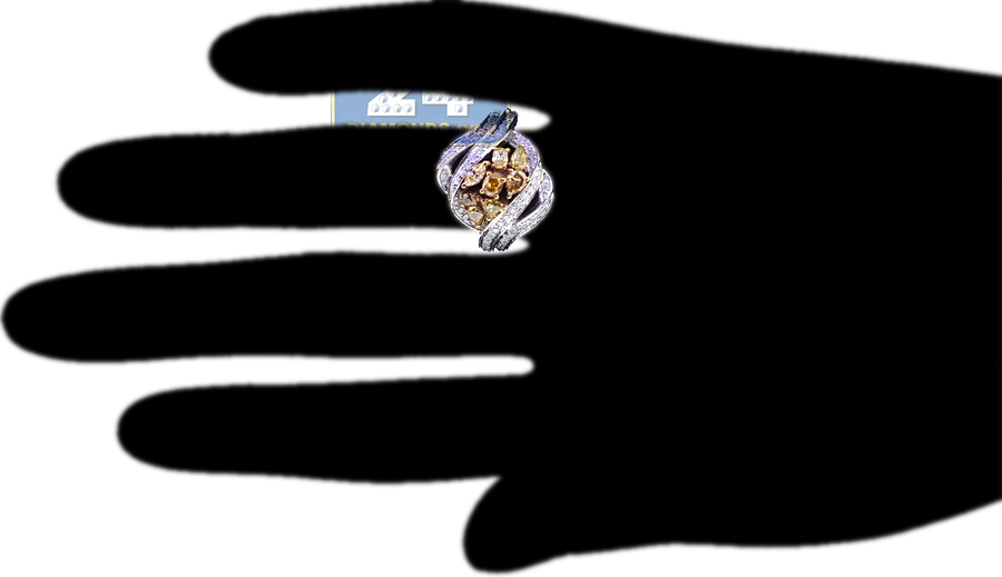 14K White Gold 1.57 ct Fancy Diamond Womens Cluster Ring