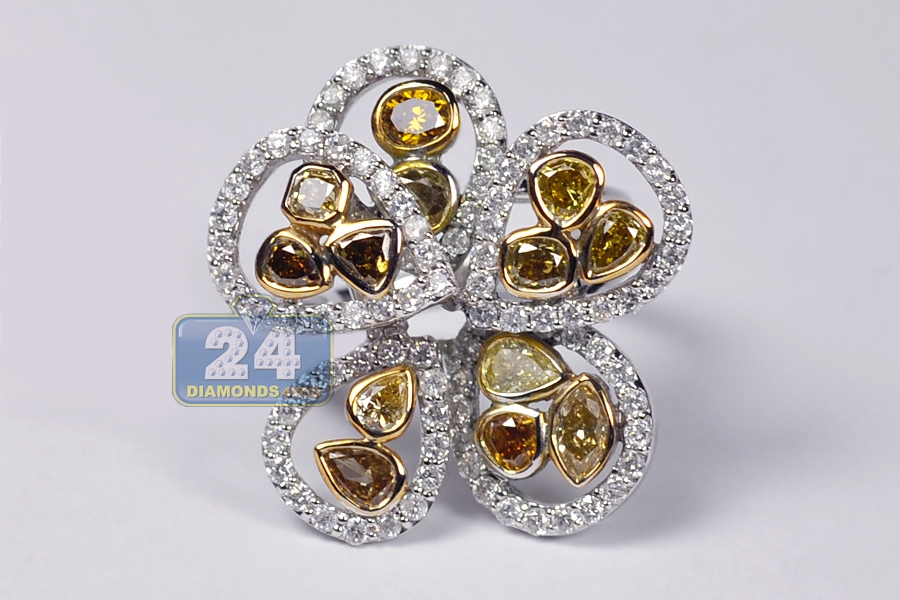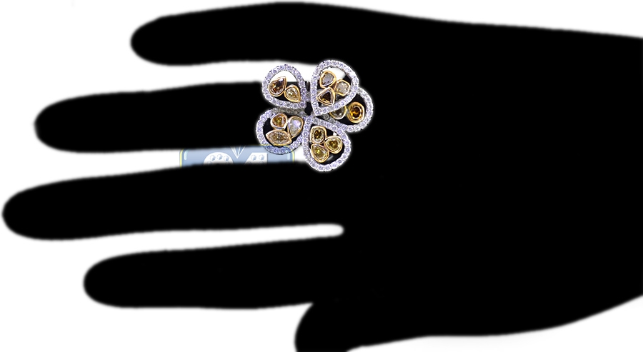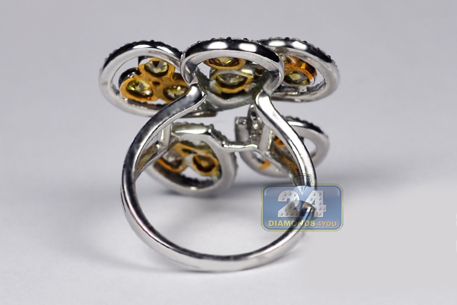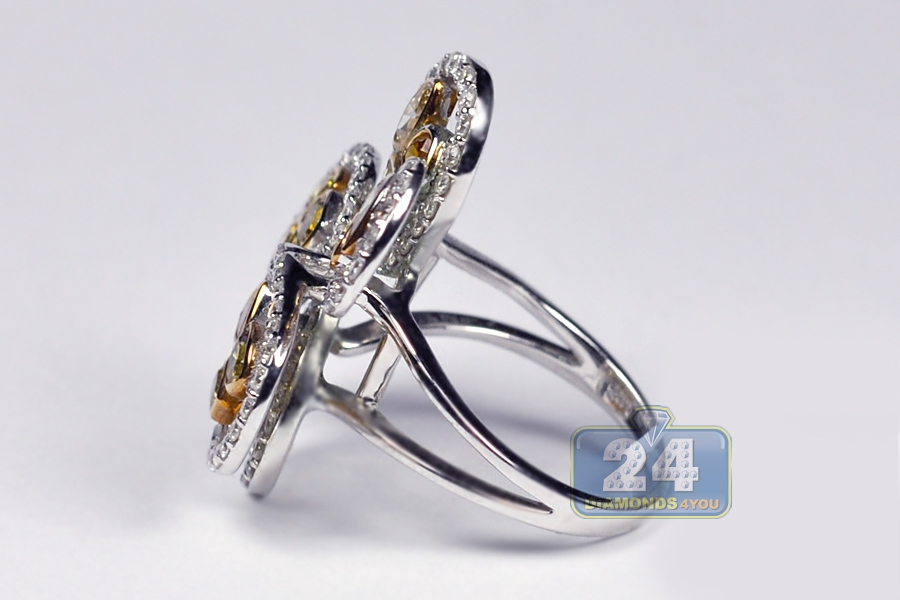 14K White Gold 3.31 ct Fancy Diamond Womens Flower Ring