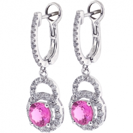 You'll get outstanding results if you reach for our stunning pair of gemstone drop earrings! They're masterly manufactured from cool 18k white gold, and high-polished for shimmering smooth touch. They also feature 2.21 carats of round-shape heated pink natural sapphires that highlighted by 1.00 carat of icy white round brilliant-cut diamonds. The jewelry piece is closed with comfortable omega backs. Just show off these women's diamond dangle earrings when you will be planning the next party!