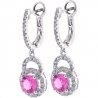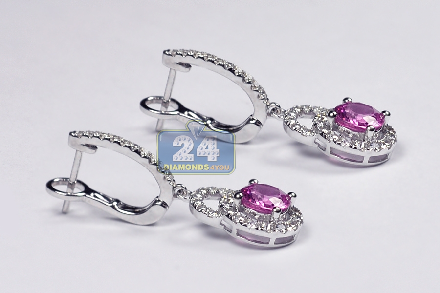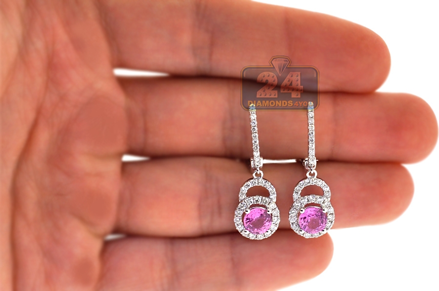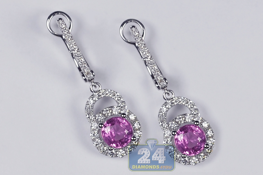 18K White Gold 3.21 ct Pink Sapphire Diamond Womens Drop Earrings