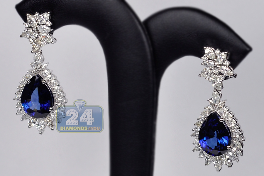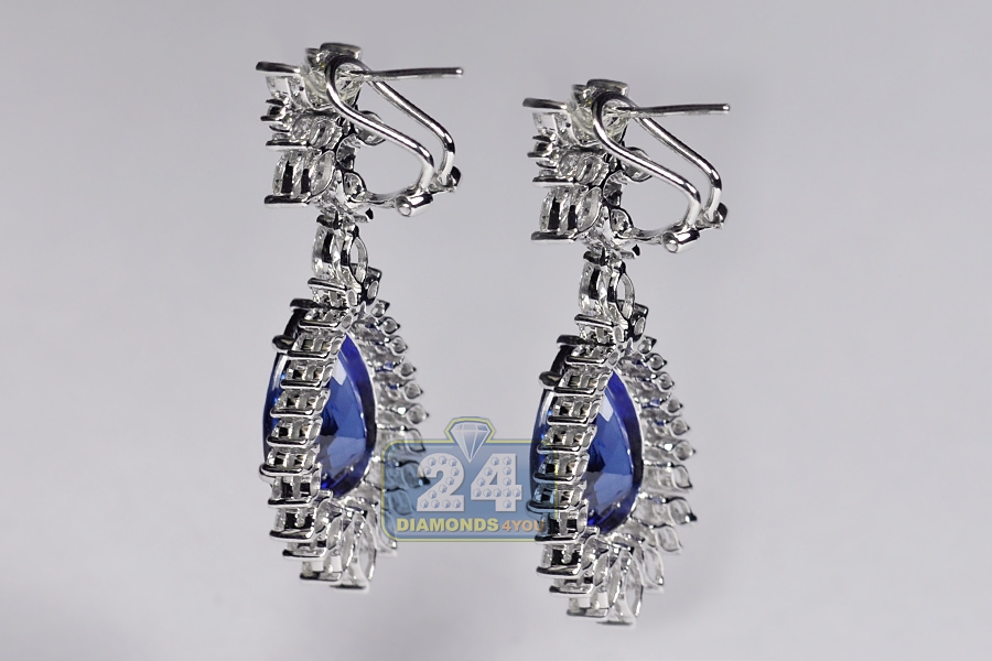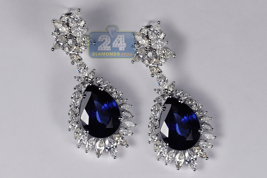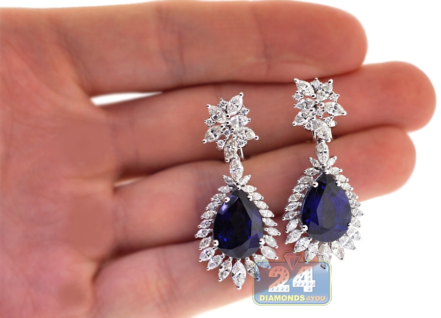 18K White Gold 22.04 ct Blue Sapphire Diamond Drop Earrings