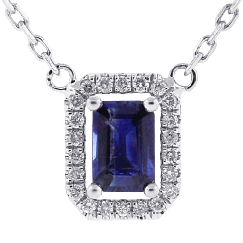 Try our gemstone drop necklace, if you want an affordable and elegant update to your look! It's masterly made of cool 14k white gold, and highly polished for shimmering finish. The drop pendant features halo setting that encrusted with heated blue radiant-cut genuine sapphire (0.62 carat) in the center, and white round-cut diamonds (0.12 carat) around. This women's gemstone pendant measures 10 x 7 mm; and a fine cable chain makes this piece 16.5 inches in length. There's no wrong way to wear this lady's diamond necklace!