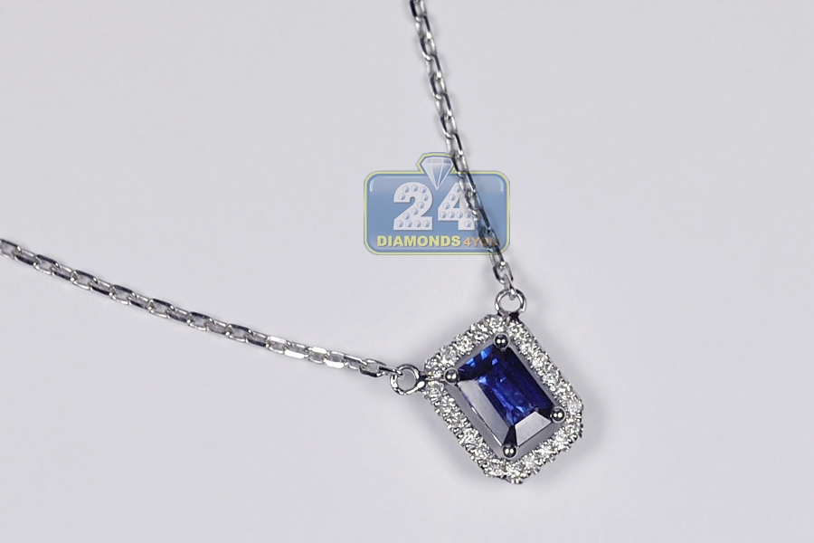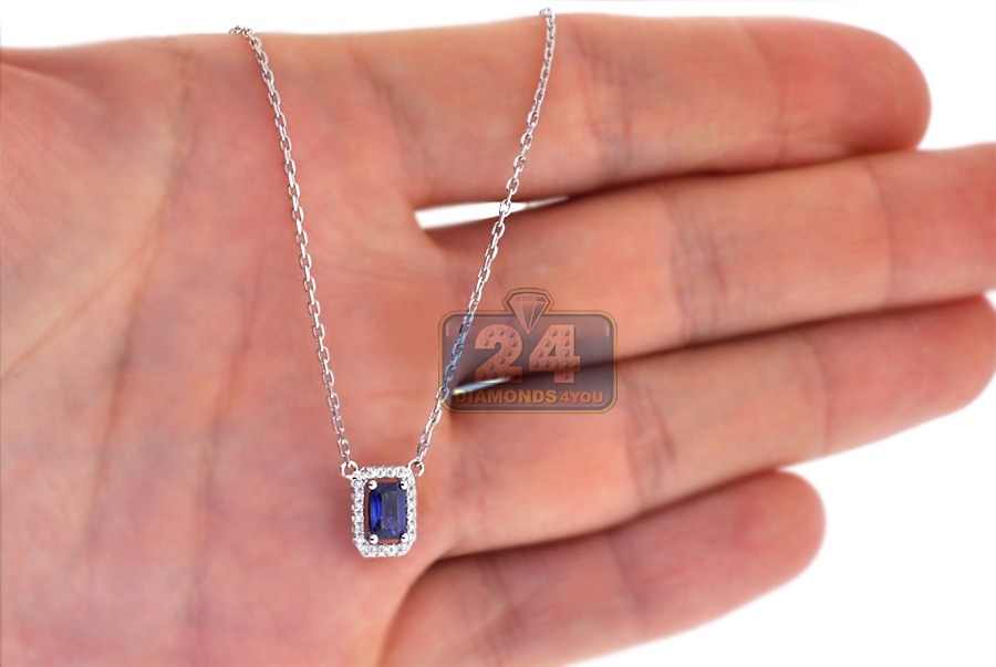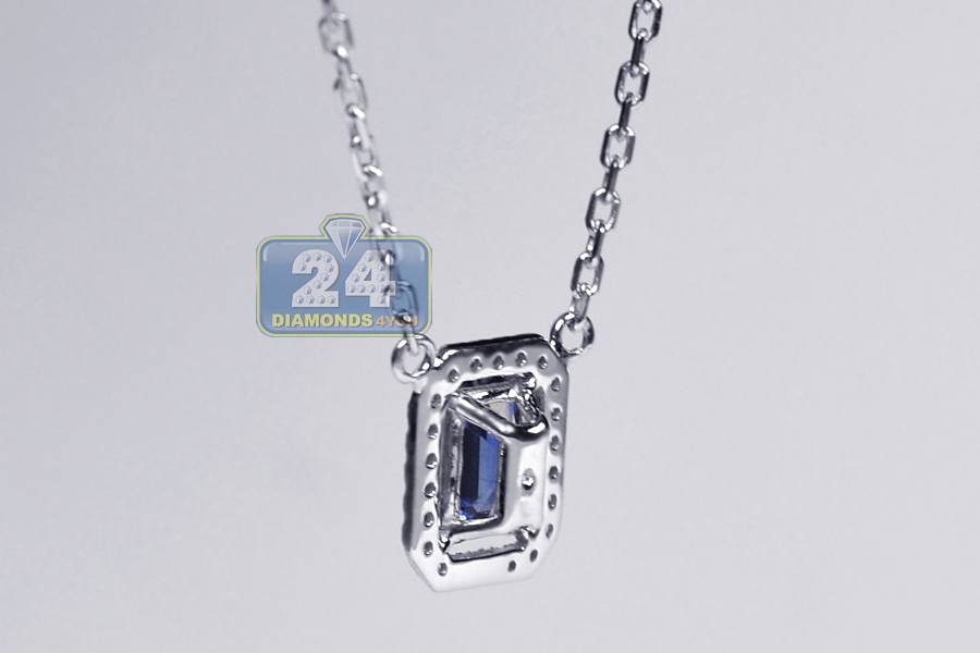 14K White Gold 0.74 ct Sapphire Diamond Womens Drop Necklace