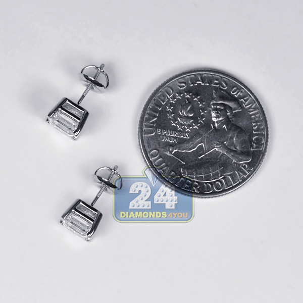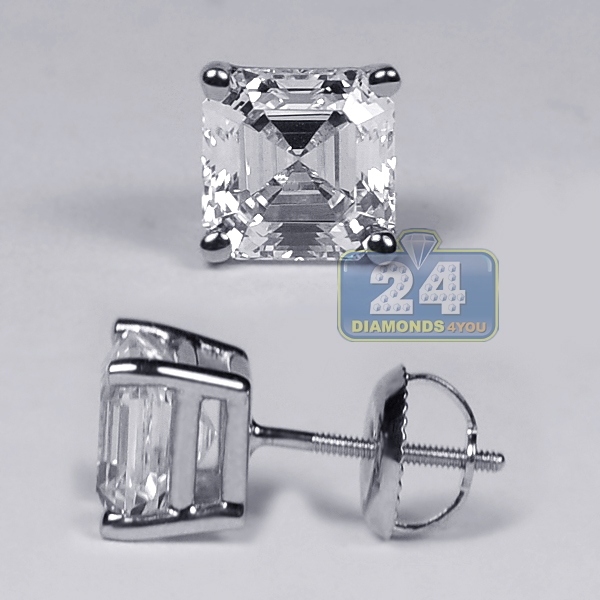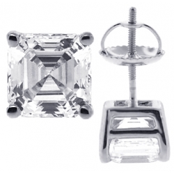 Womens Stud Earrings 14K White Gold 3 ct Asscher Swarovski Crystal