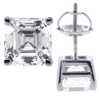 Our pair of stud earrings will complete both dressy and formal outfits! They're lovely made of cool 14k white gold, and set with two genuine Swarovski crystals of asscher-shape, all totaling 3.00 carats. The pair is closed with user-friendly screw back closures. These women's affordable studs shine like high-quality diamond piece of jewelry!
