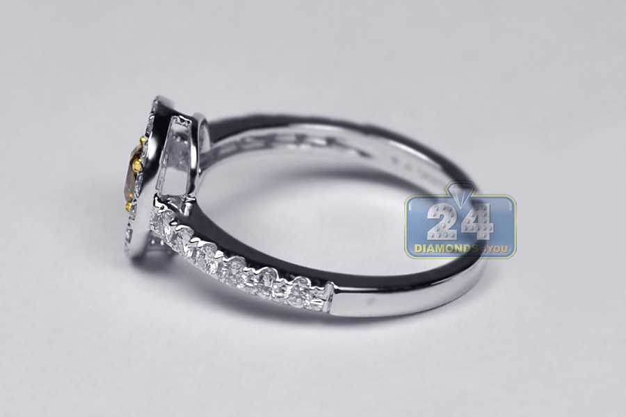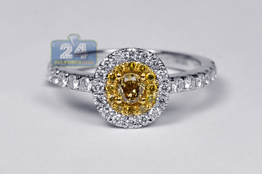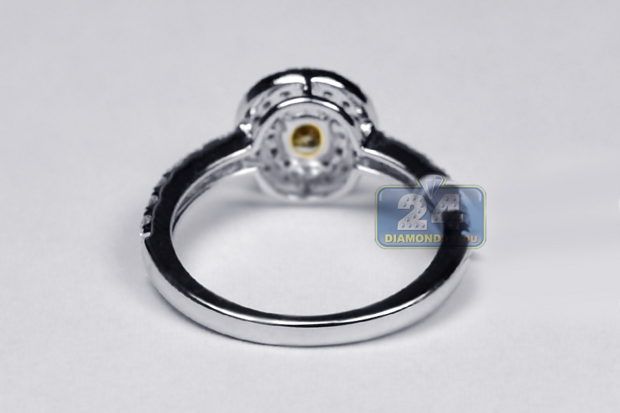 Womens Yellow Diamond Engagement Ring 14K White Gold 0.82 ct