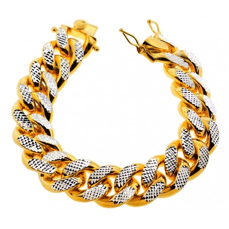 Featuring 20 mm in width, 9 inches in length and approximately 250 grams in weight, our solid miami cuban bracelet will leave you feeling distinguished! It's professionally handmade of precious 925 sterling silver, and covered with yellow gold plating that helps prevent tarnishing and gives a bright color. The piece of jewelry also shines with icy diamond cut pattern. Enjoy wearing this durable cuban link bracelet!