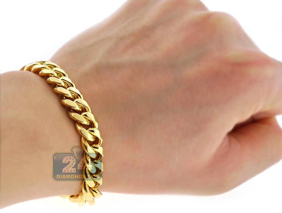 Yellow Sterling Silver Miami Cuban Link Bracelet 10 mm 9 inches