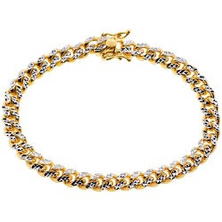 Featuring 20 mm in width, 9 inches in length and approximately 240 grams in weight, our solid miami cuban bracelet is ready for your next special occasion! It's masterly handcrafted in precious 925 sterling silver, and covered with yellow gold plating that helps prevent tarnishing and gives a bright color. Enjoy wearing this durable cuban link bracelet!