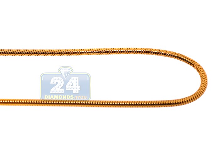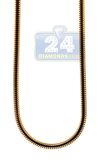 This mens snake chain necklace is crafted of yellow gold plated stainless steel and can be worn everyday for a lifetime. The mens snake chain necklace is completed with a very secure, lobster clasp.