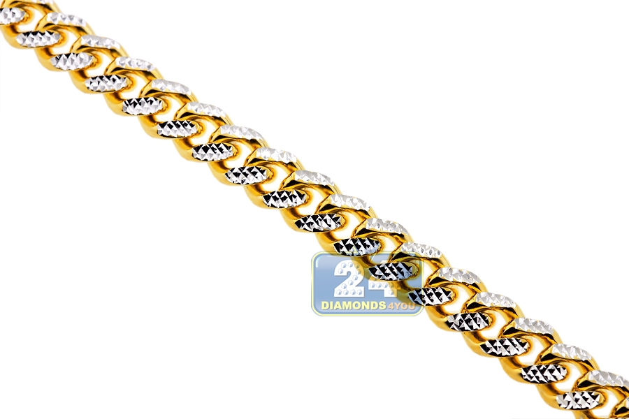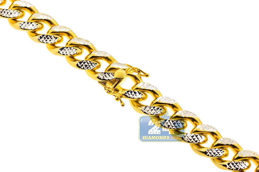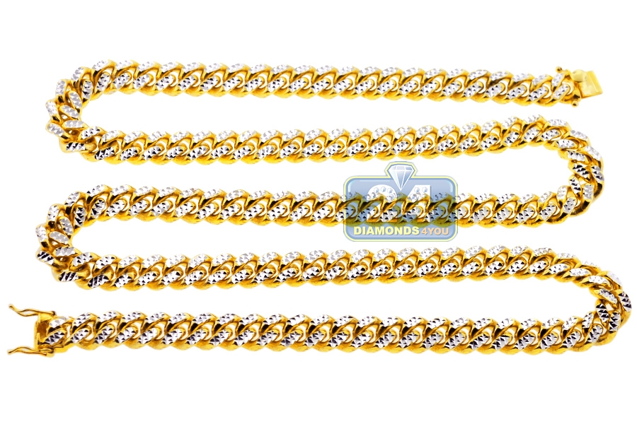 Yellow 925 Silver Miami Cuban Diamond Cut Mens Chain 10.5 mm