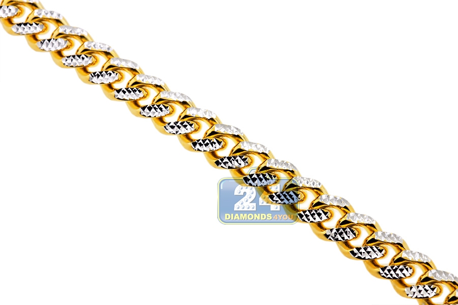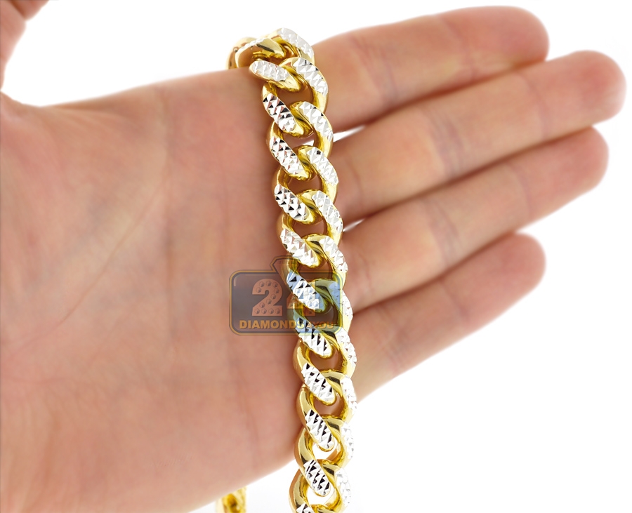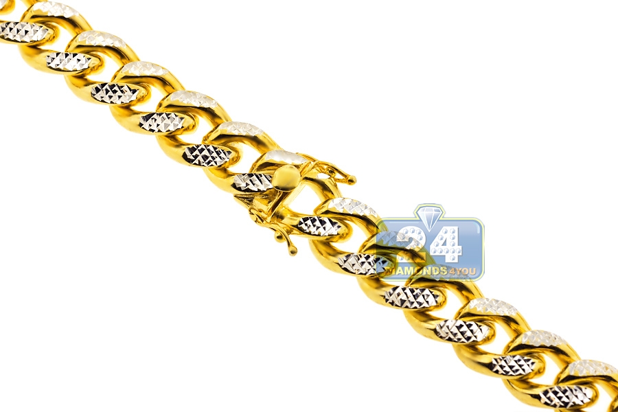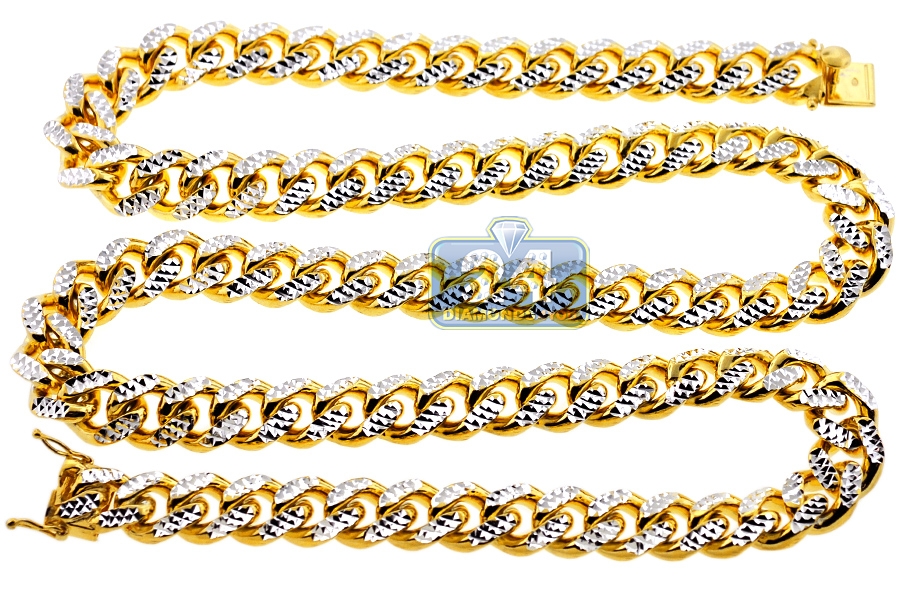 Yellow 925 Silver Miami Cuban Diamond Cut Mens Chain 14 mm