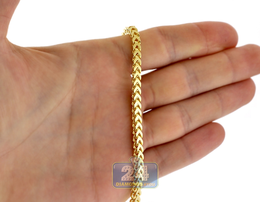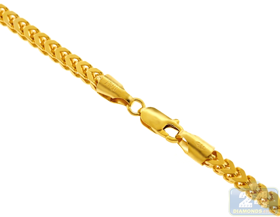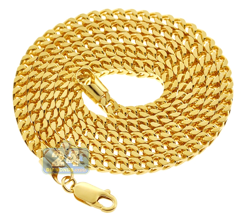 Yellow Sterling Silver Solid Franco Mens Chain 4 mm
